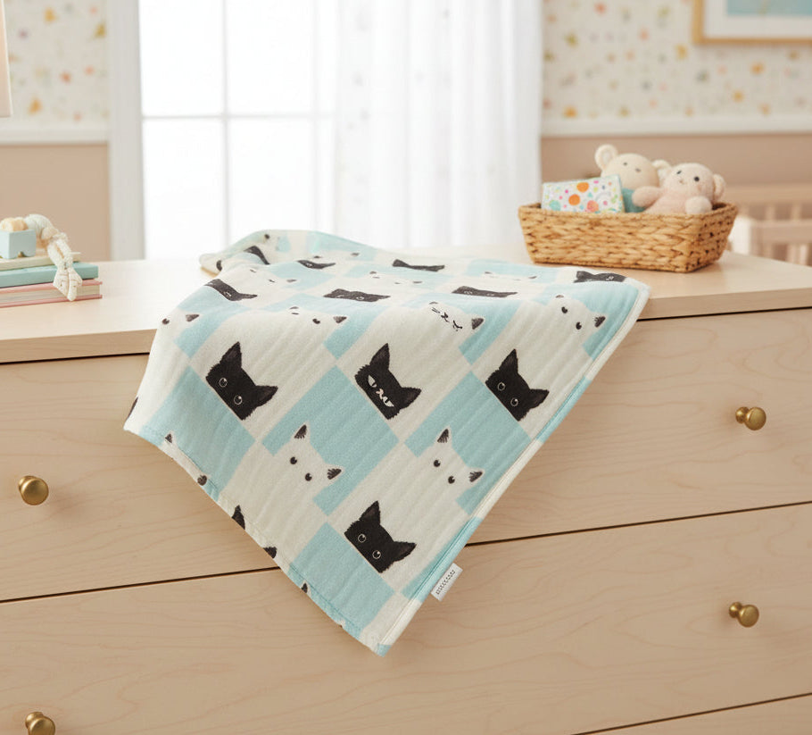 Peek-A-Boo Cats and White Bamboo Muslin Newcastle Blanket