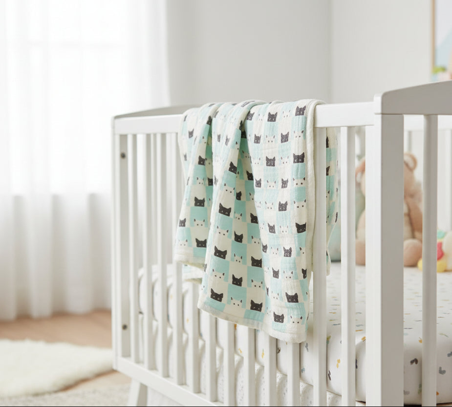 Crafted from premium four-layer bamboo muslin, this blanket delivers exceptional softness and breathability for year-round comfort. The natural cotton-blend construction provides gentle support for sensitive skin while maintaining durability through frequent washing. Lightweight yet substantial, it transitions seamlessly from nursery cuddles to stroller outings, making it an essential addition to any parent's gear collection.