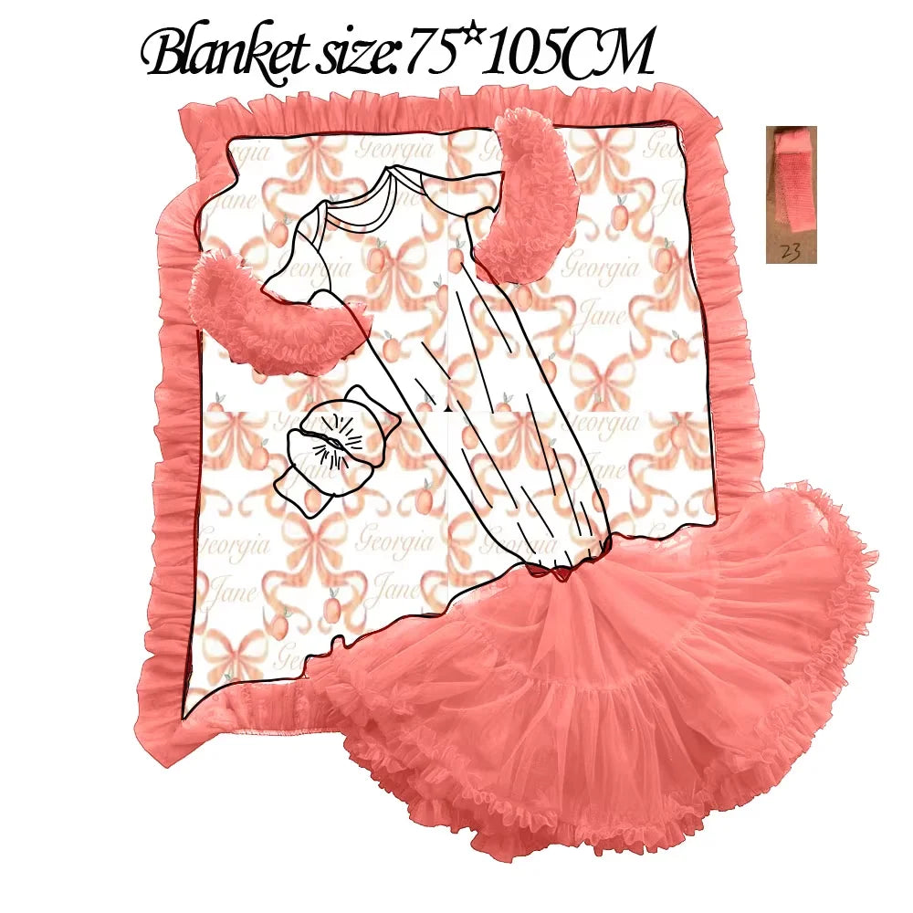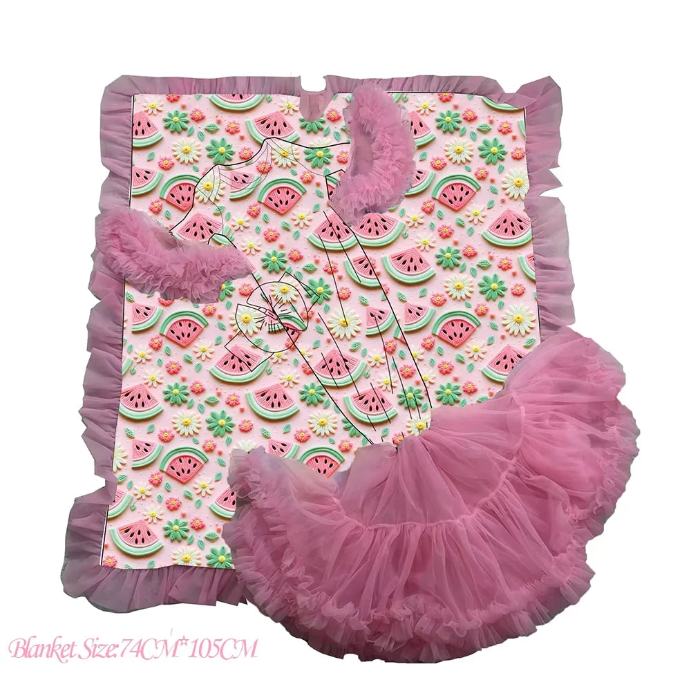 This exquisite newborn gown combines delicate watermelon-inspired tutu layers with vibrant rainbow floral accents, perfectly designed for baby girls. Crafted for comfort and elegance, it pairs beautifully with a matching customizable baby blanket, offering a coordinated and personalized ensemble. Ideal for special occasions or photoshoots, this gown blends charming style with soft, breathable materials to ensure your little one’s comfort and timeless appeal.
