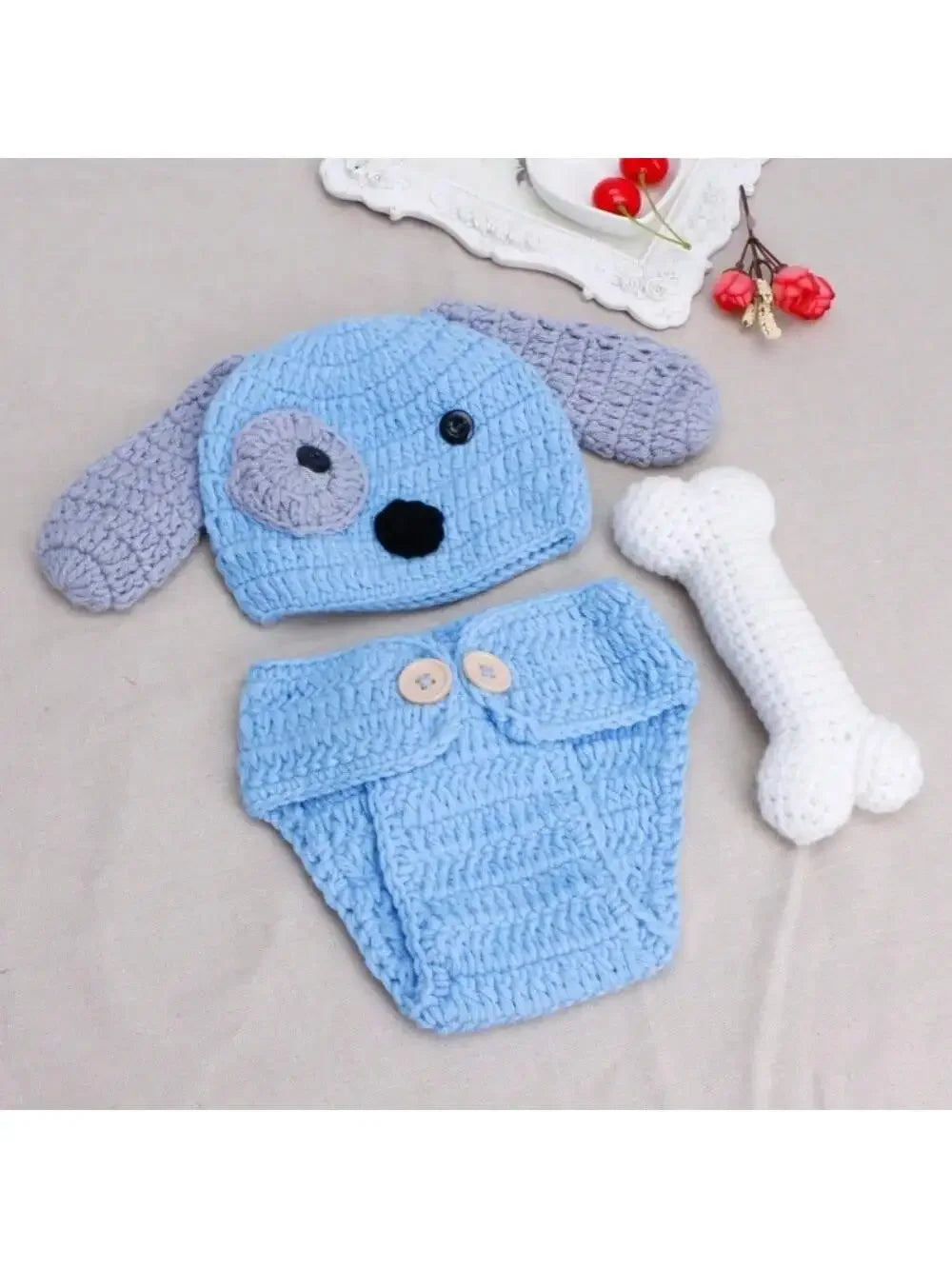 Capture precious moments with this adorable puppy costume set, perfect for newborn photography sessions. This charming ensemble features a soft crochet-knitted hat and matching cape, designed to fit both boys and girls. The cozy dog-themed outfit brings playful personality to studio photos while keeping your little one comfortable. Ideal for professional photographers and parents alike, this prop set transforms ordinary shots into memorable keepsakes. Create magical memories with this sweet, Instagram-worthy newborn photo essential.