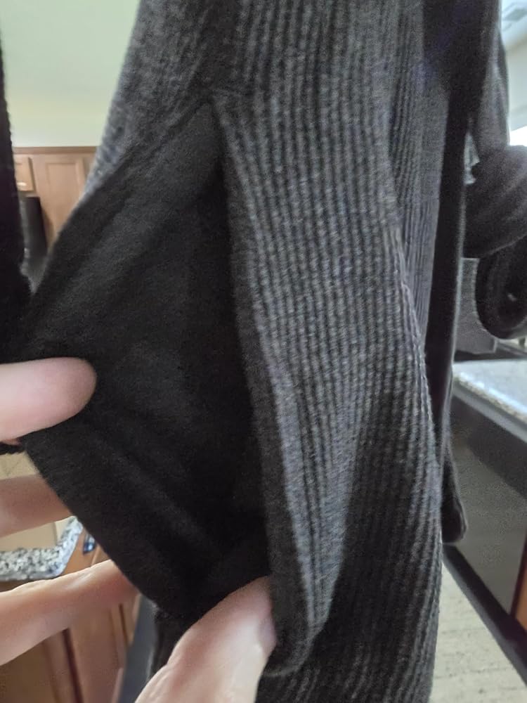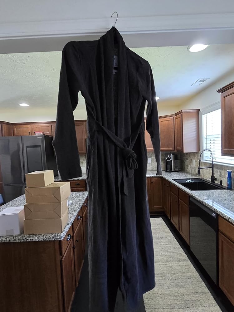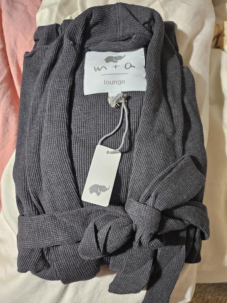 I'm a post-menopausal woman and yes, I got a maternity robe... because comfort is queen.This is pretty much a perfect robe. Like, PERFECT. Where do I begin?1. It's 95% organic cotton, making it light, breathable and soft. Now, right out of the package, the waffle weave feels slightly rough, but give it a wash and wear it for a week and it becomes like a second skin. I don't ever want to take it off.2. It doesn't look like a typical robe. There's an elegance to it and it looks more like a long sweater or a duster. Which is great if you want to, say, run out pick someone up from the airport early in the morning or drop the kids at school without getting fully dressed.3. The black color is really a dark gray. It has that sort of wabi-sabi lived-in look and feel to it that makes it an instant essential.4. I love that the ties are attached.5. The overall construction and quality are first-rate. Seams are tidy, fabric is durable, and you can tell a lot of thought went into the design and construction of this garment.I've looked around for a robe I like for a long time. They all seem impractical and most of them are made with synthetics. I'm so glad I found this one.