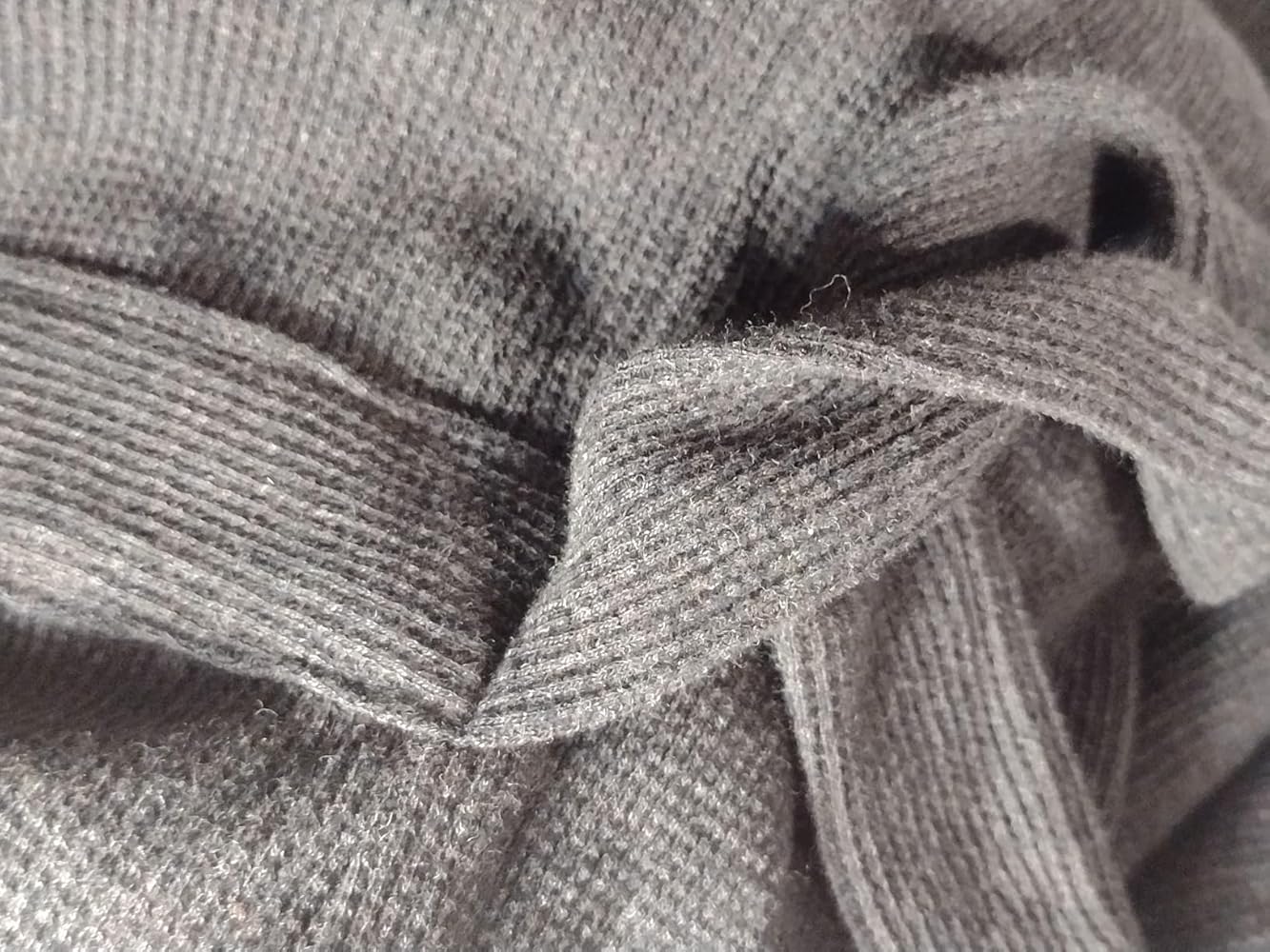 Amazing maternity, post partum robe. The belt is built in so it doesn't get lost or slip, no worries about tangles in the wash. It also sits high for the pregnancy belly. The material is a soft jersey/waffle pattern. It has pockets and is stretchy. This would make an amazing gift for an expectant mom or someone undergoing abdominal surgery.