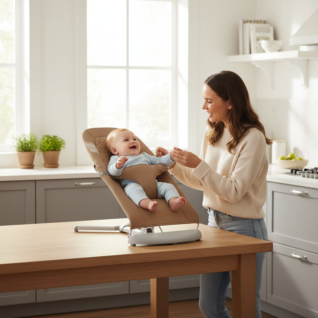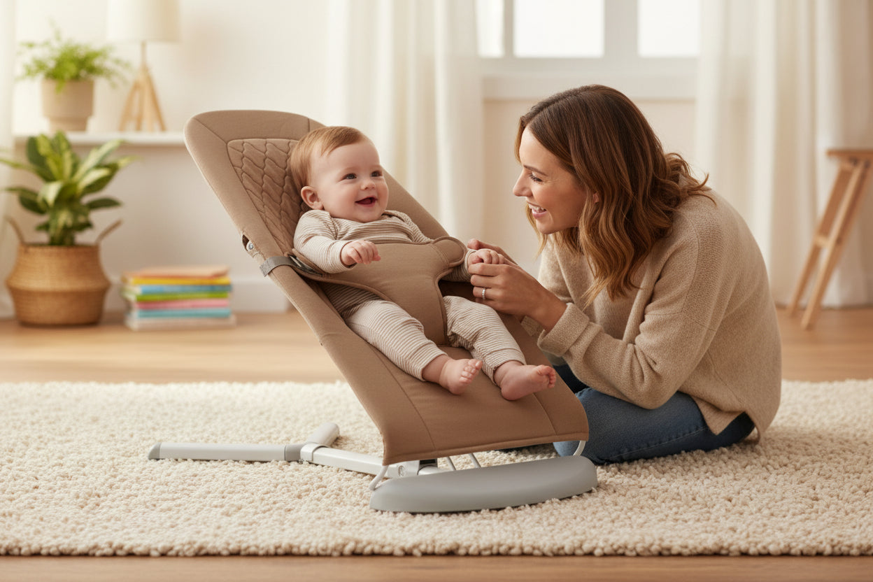 Features & Details Gentle Bouncing, Happy Babies: Natural bouncing, no plug-in required! VEVOR baby bouncer features 3-point safety harness and stereoscopic wrapping, providing a gentle and secure rocking experience. Soothing bouncing motions imitate moms warm womb, keeping your babies sleep soundly and play happily. (Suitable for 0-9 months babies, Maximum load: 20LBS) 2 Reclining Positions: Our baby bouncer chair features 2-level recline angles, allowing you to find the perfect angle for your baby's comfort and development. Whether it's soothing nap time or engaging playtime, this bouncer seat adapts to your baby's needs, providing optimal support for their head, neck, and spine. Premium Materials: Our portable bouncer seat for babies is made from high-quality, soft cotton and non-woven fabric, skin-friendly and breathable. The removable, machine-washable cover simplifies cleaning and maintenance, so you can spend more time enjoying precious moments with your little one. Maximum Safety: This infant rocker chair is equipped with a 3-point safety harness and stable metal base, providing secure support to prevent your baby from accidental falling. The adjustable harness length ensures a perfect fit for babies of various sizes, allowing them to bounce freely while staying safe. Foldable and Space-Saving: No disassembly is needed—just fold this infant bouncer for easy storage. The included carrying bag makes it effortless to bring the bouncer seat outdoors, ensuring a cozy and comfortable space for your baby wherever you go.