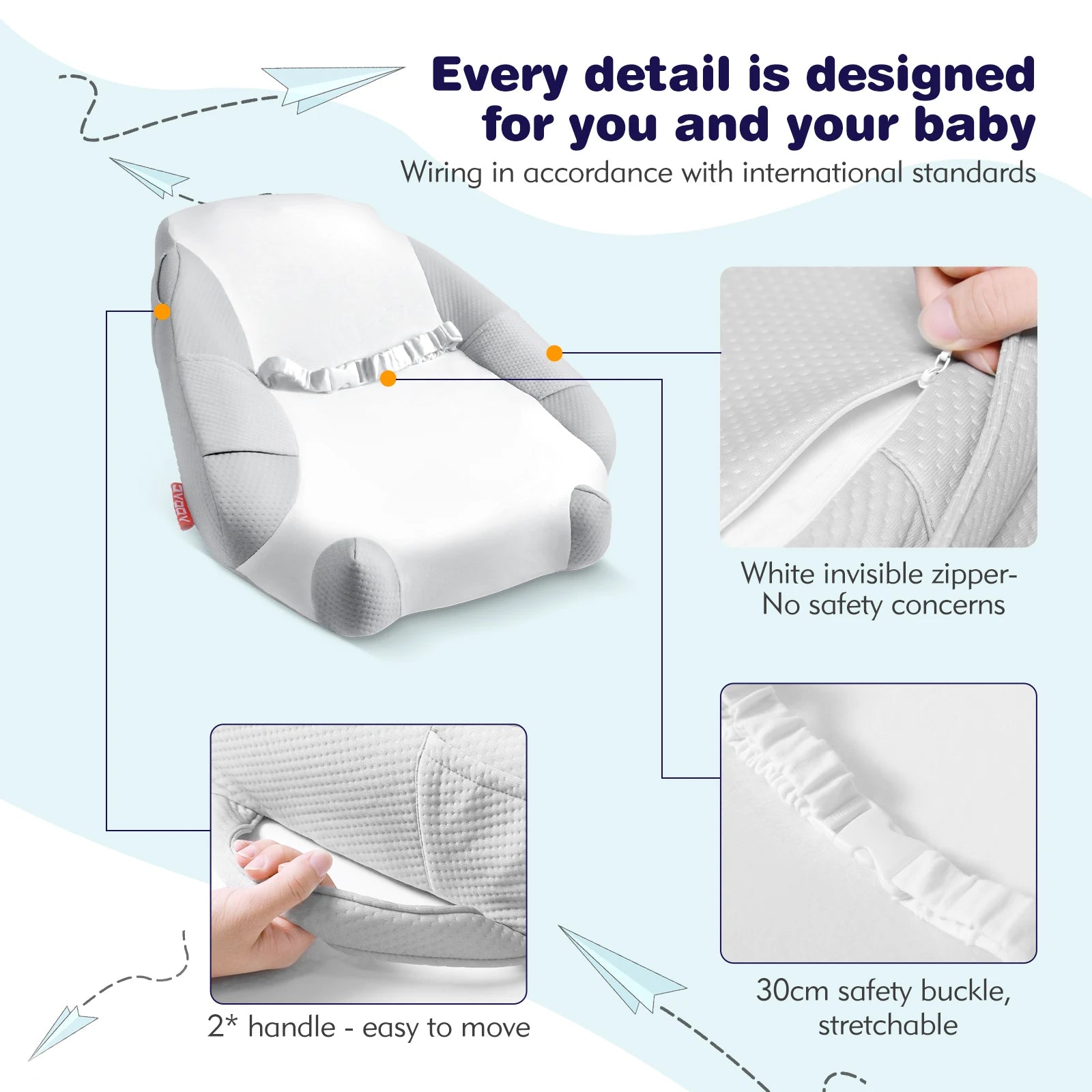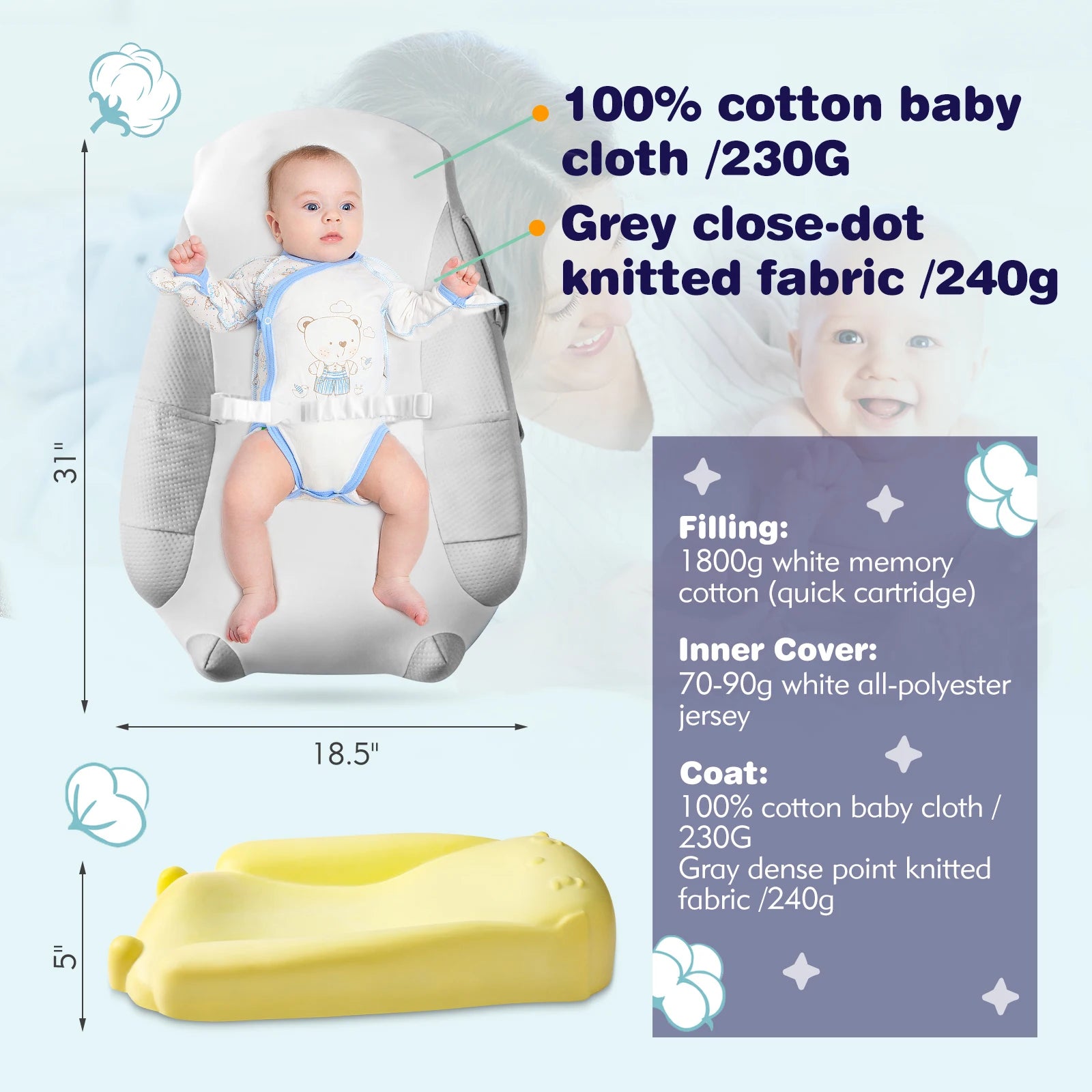 This breathable baby lounger keeps your newborn cozy and safe with soft, skin-friendly cotton fabric. Its thick bumper supports your baby’s spine and mimics a mother’s warmth for sweet, comfortable naps. Lightweight and portable with a handy handle, it’s perfect for home or travel. The reversible, machine-washable cover offers easy care and style options. Adjustable to fit babies from 0 to 24 months, this essential lounger makes a thoughtful gift that provides comfort and peace of mind to parents and their little ones.