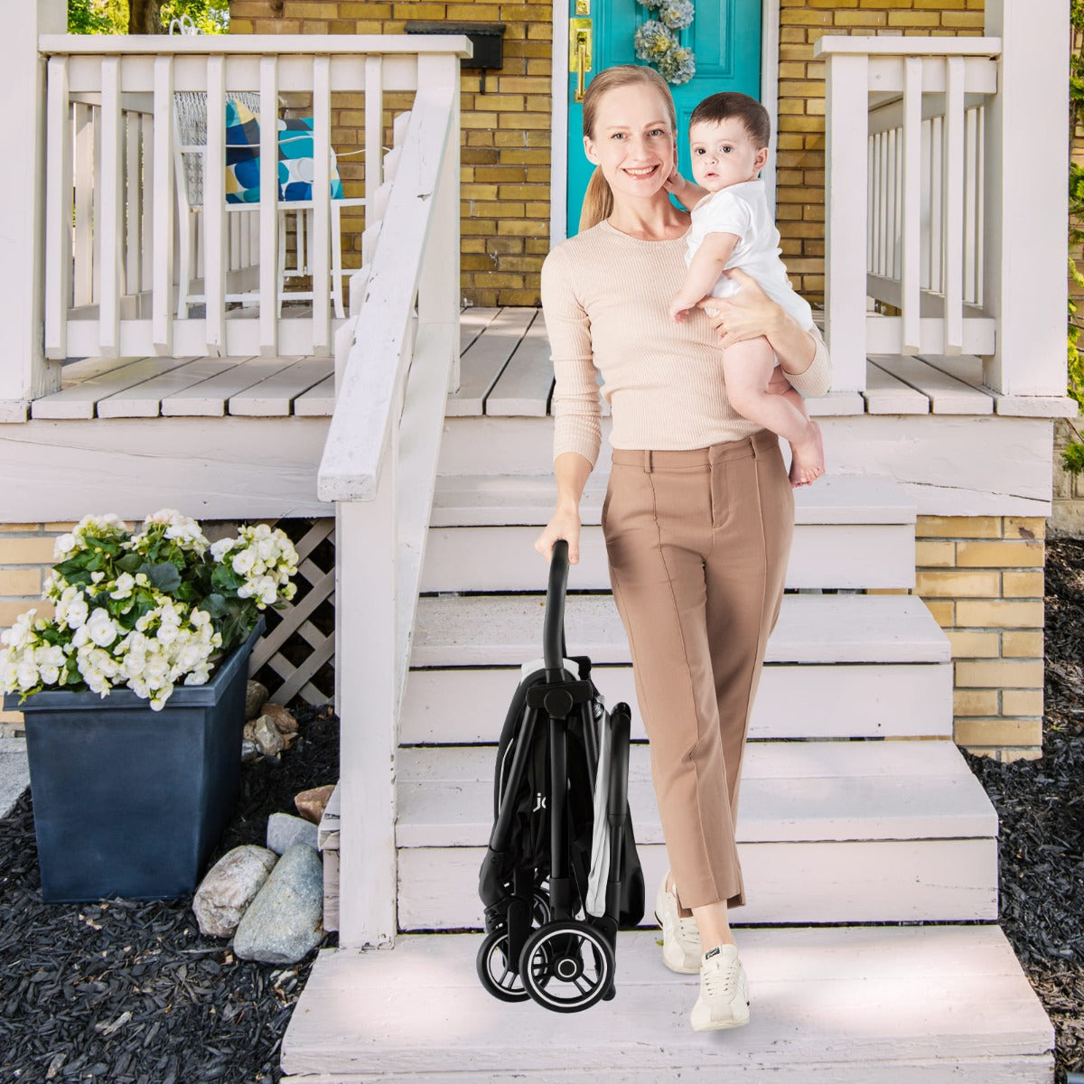 This gravity folding baby stroller will bring much convenience to Engineered for modern parents seeking reliability and convenience, this lightweight infant stroller combines sophisticated design with practical functionality. The robust aluminum frame delivers exceptional durability while maintaining a svelte 7 kg profile, enabling effortless portability. Its innovative gravity-fold mechanism collapses seamlessly without requiring you to bend, and the stroller remains stable in its compact state for storage or transport. The adjustable backrest spans 115°–150°, complemented by a three-position footrest and dual-level canopy, allowing you to customize your child's position for optimal comfort. Premium Lycra upholstery and multi-layer seating ensure a soft, skin-friendly experience. Safety is paramount with a five-point harness, one-step rear brake, detachable bumper bar, and peek-a-boo window for continuous monitoring. All-terrain EVA wheels with shock-absorbing front suspension navigate diverse surfaces with stability. The ergonomic handle and generous storage basket address parental needs, while the stroller's AS/NZS 2088:2000 certification provides assurance. Ideal for infants from 6 to 36 months, this stroller balances elegance with dependable performance.