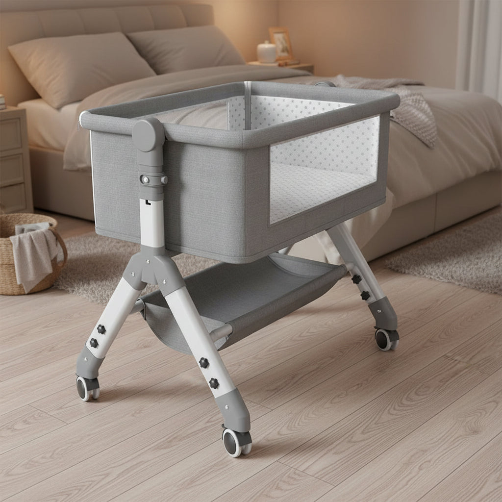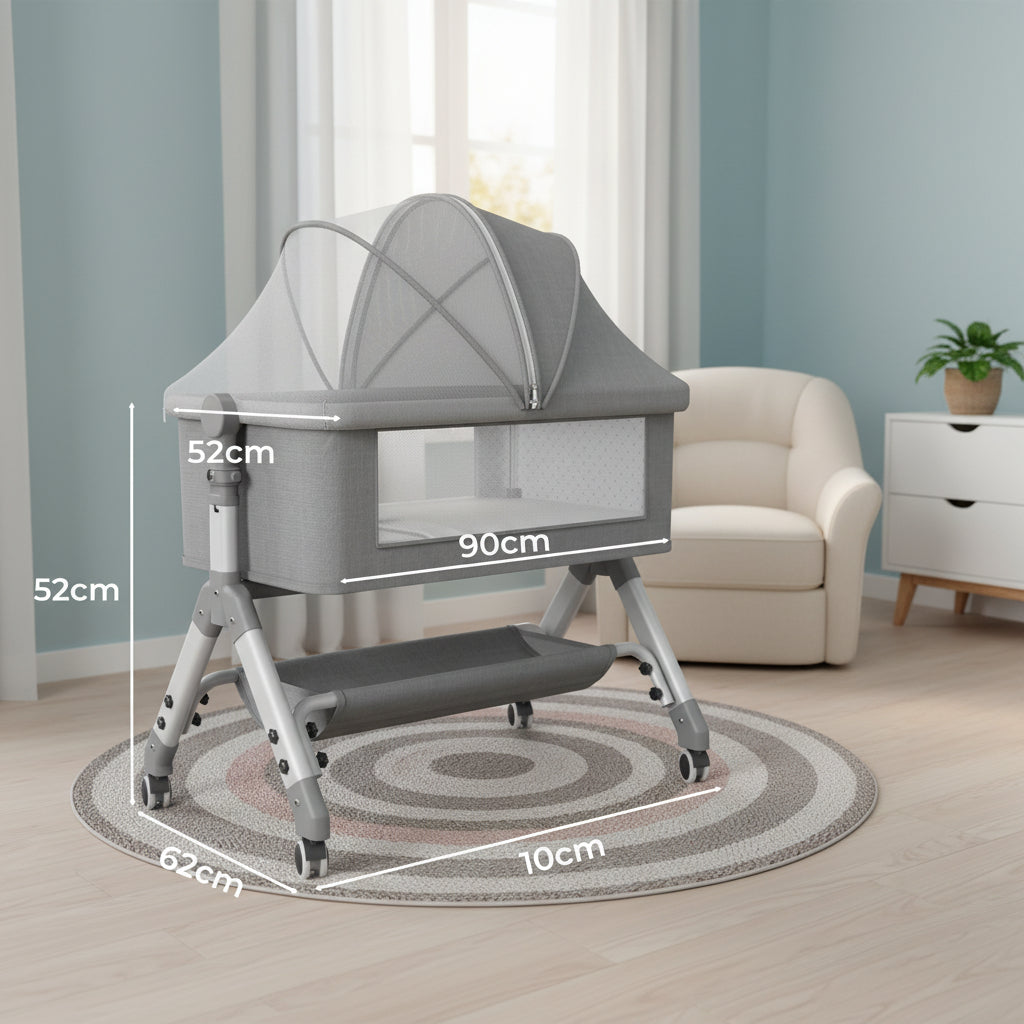 Create a serene sleeping sanctuary for your newborn with this versatile Bopeep Baby Cot Bed. Designed as a 3-in-1 beside bed, crib, and bassinet, it adapts seamlessly to your baby's evolving needs from birth through 24 months. The adjustable height feature and fold-down side panel provide convenient access, while the integrated mosquito net ensures peaceful rest. Featuring four lockable wheels, transport your baby's bed effortlessly between rooms or take it on travels. The removable, machine-washable mattress cover simplifies maintenance, and the sturdy carbon steel frame supports up to 18kg. With a built-in storage area and mattress tilt option, this thoughtfully engineered cot combines practicality with premium comfort for your growing family.